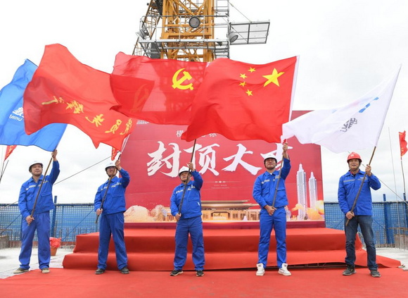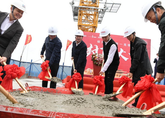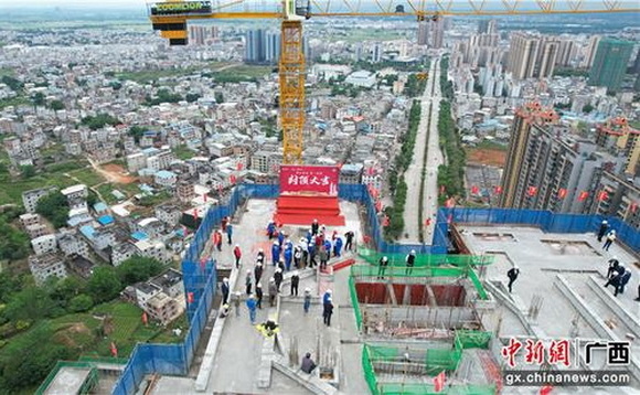 横州第一地标高楼封顶现场。梁程创 摄